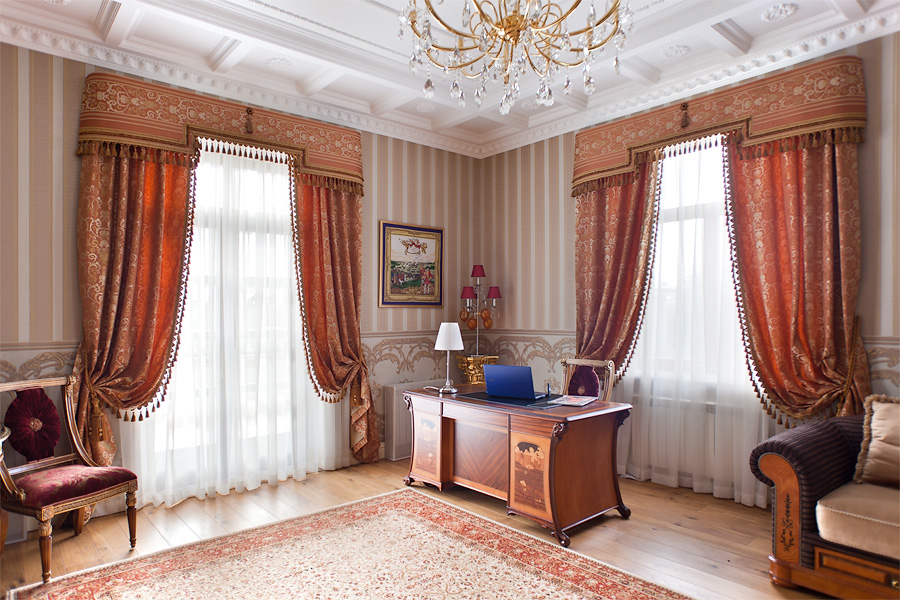 Мы готовы предоставить Вам возможность выбрать из 12 тысяч образцов, среди которых есть как эксклюзивные и элитные материалы, так и недорогие качественные ткани. Кроме этого, мы можем предложить шторы с фотопечатью, а также стильные деревянные жалюзи, отлично подходящие для загородного дома. Для нас нет ничего невозможного, ценовая политика нашей студии такова, что мы предлагаем шторы на заказ по цене от 10 000 рублей, мы надеемся, что каждый клиент сможет подобрать шторы по своему индивидуальному стилю.